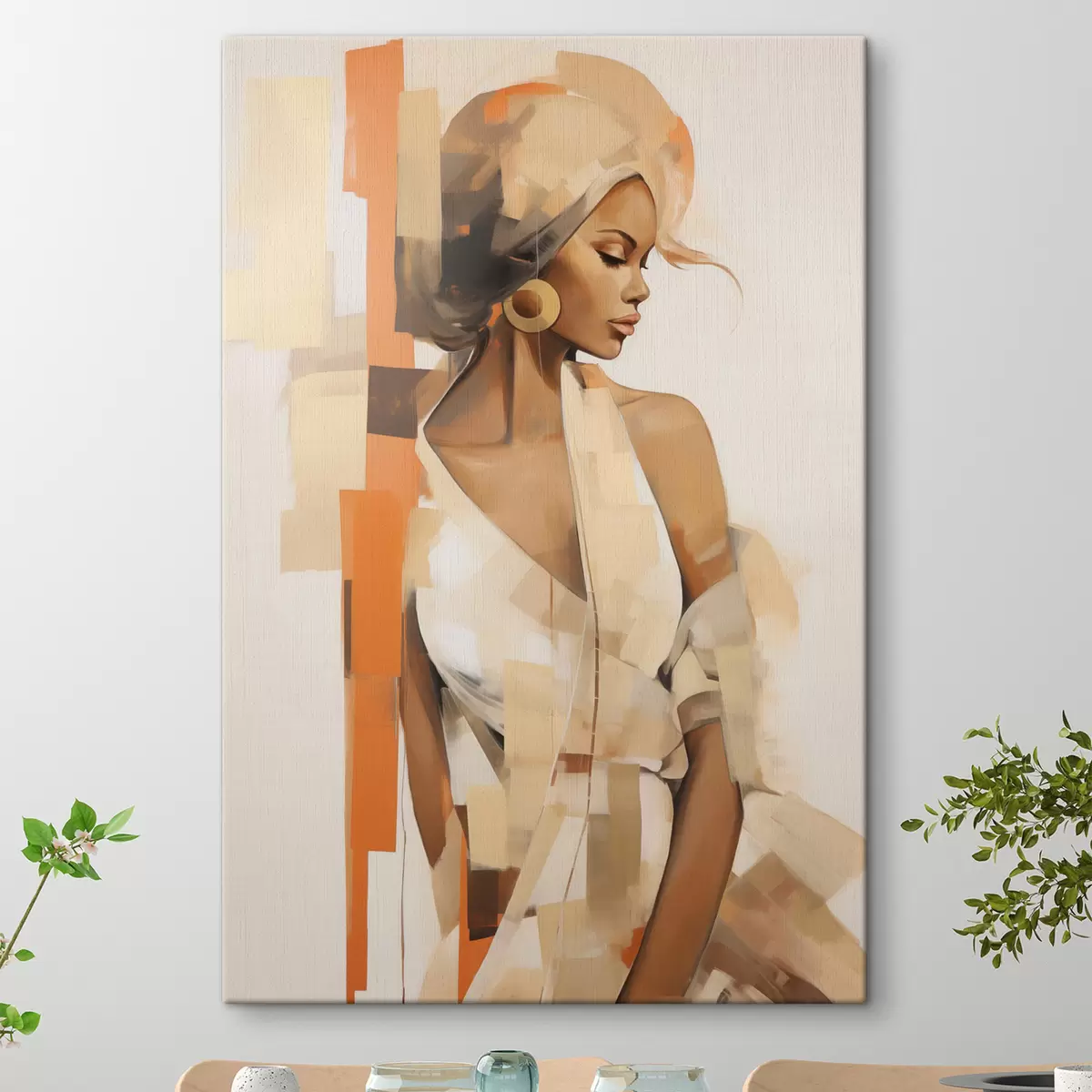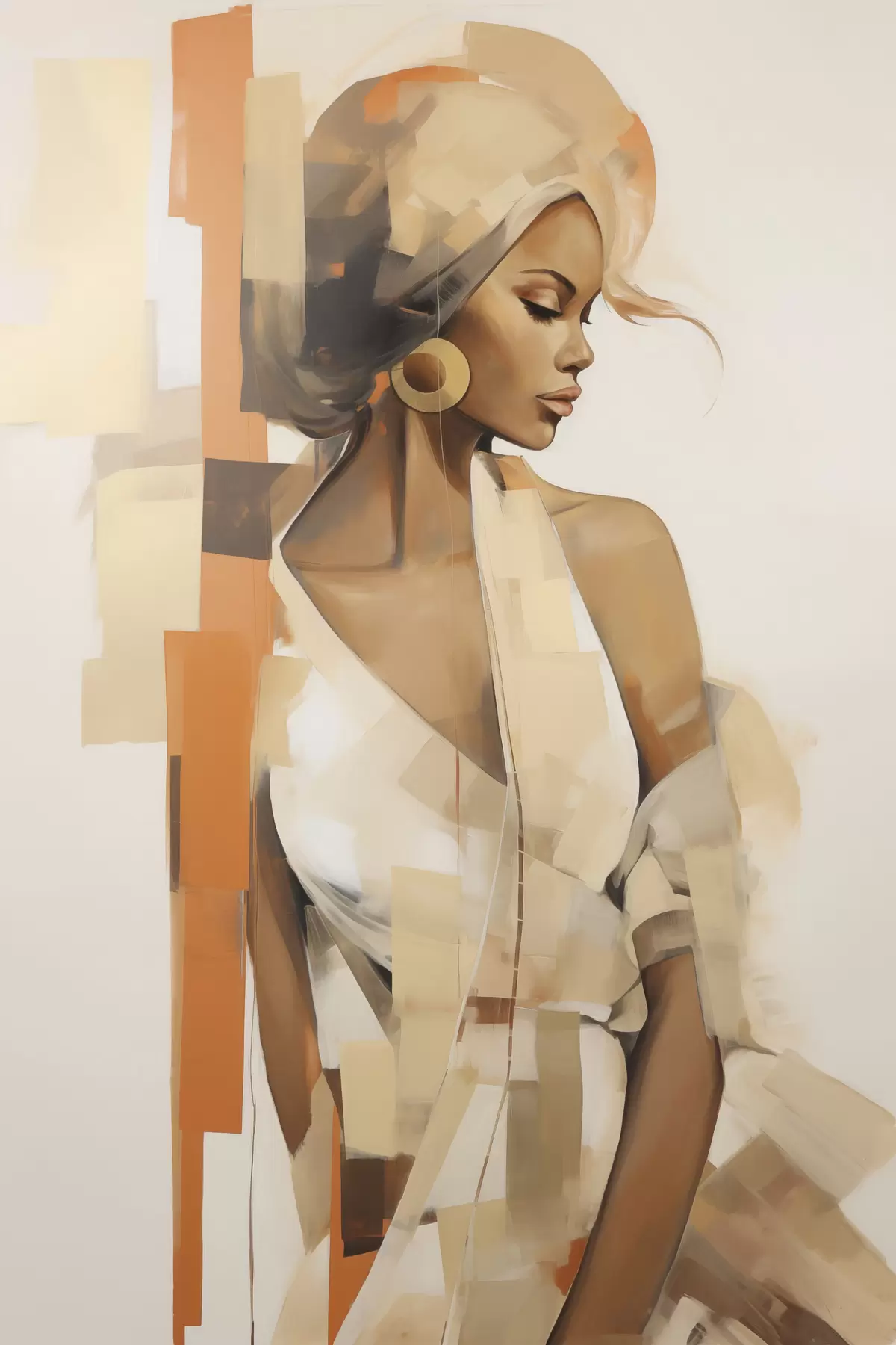 Obraz Abstraktní ženský portrét s oranžovými a béžovými tvary Č. s48735