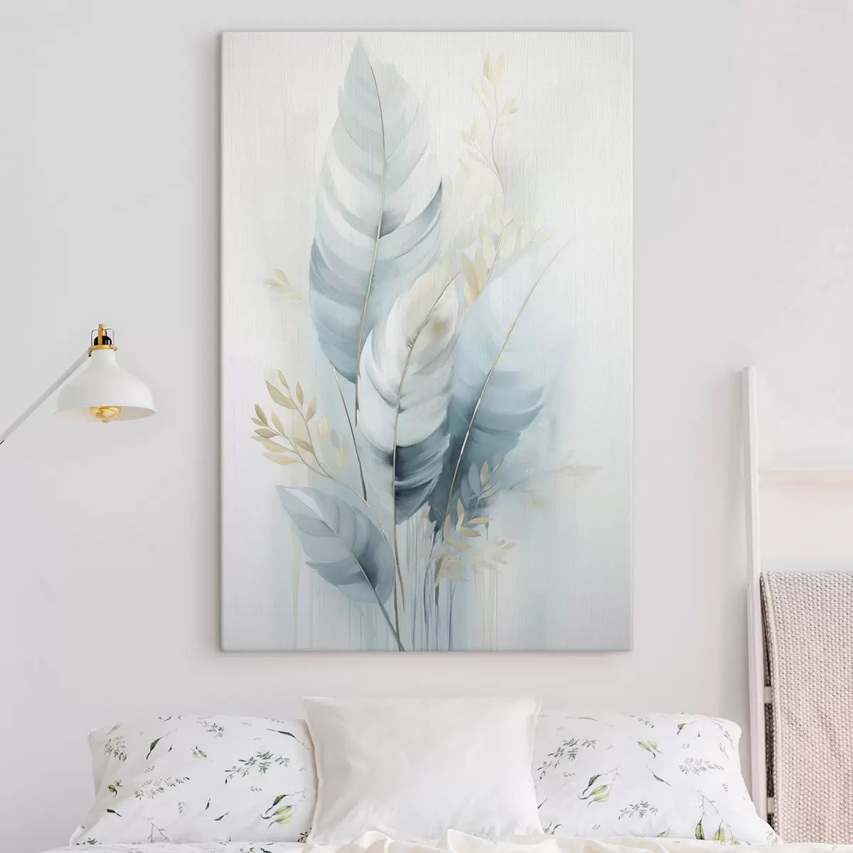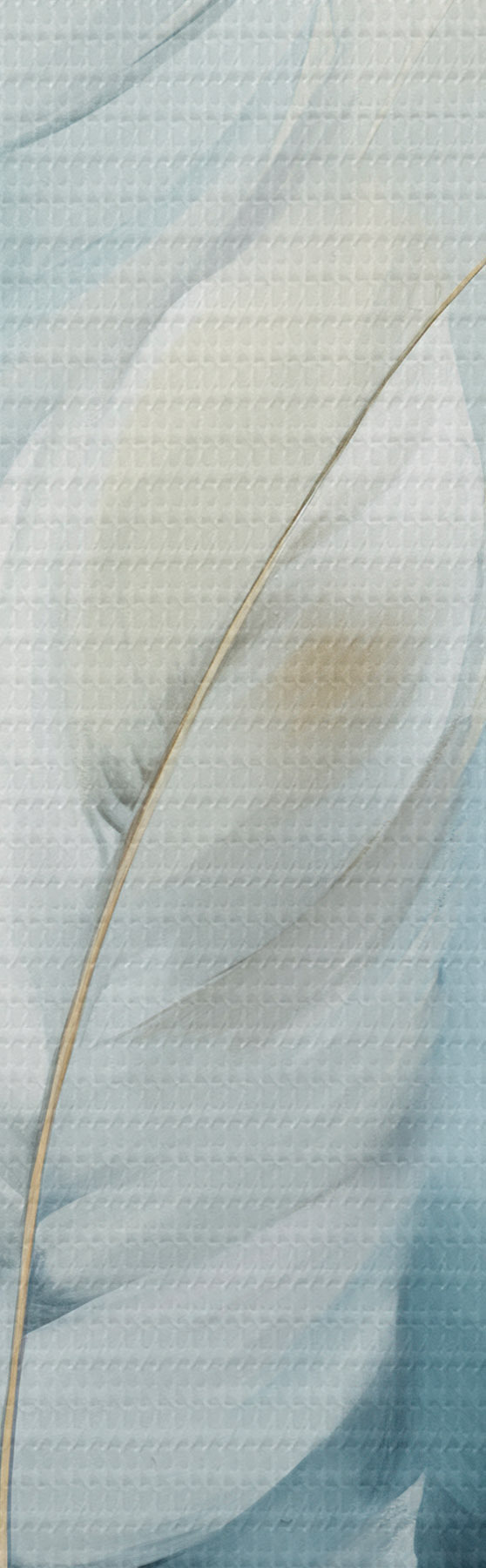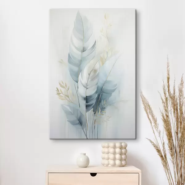 Obraz Velká, měkká peříčka v odstínech modré a bílé s jemnými béžovými lístky Č. s48749