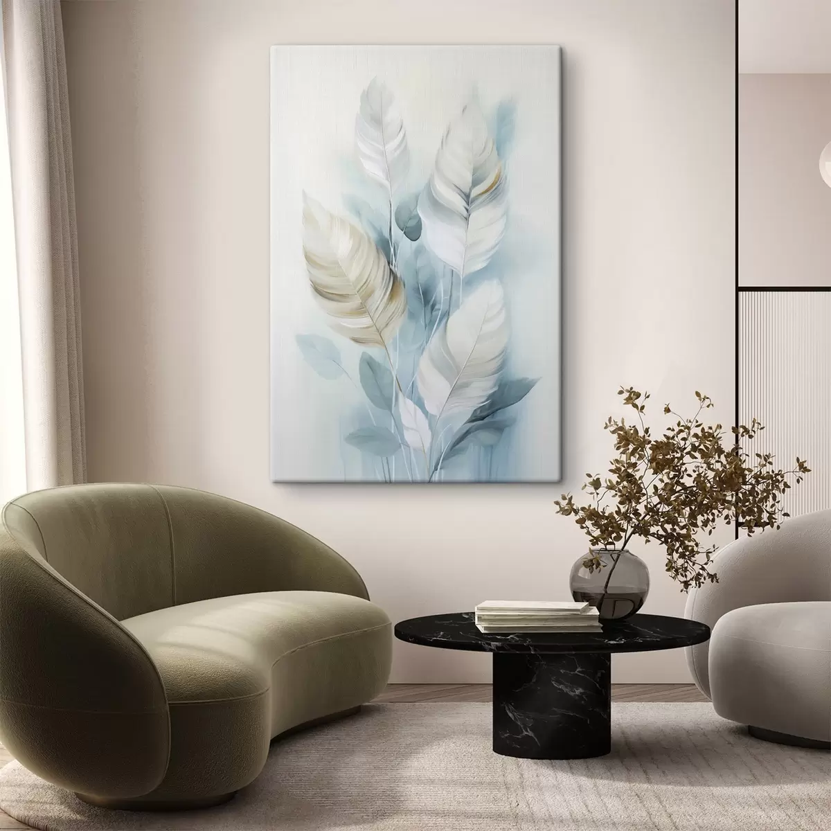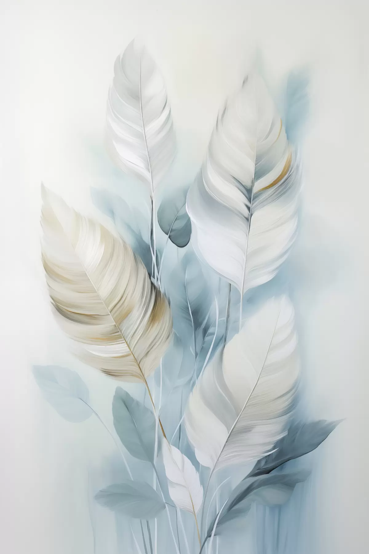 Obraz Velká, měkká peříčka v odstínech modré a bílé s jemnými béžovými lístky Č. s48750