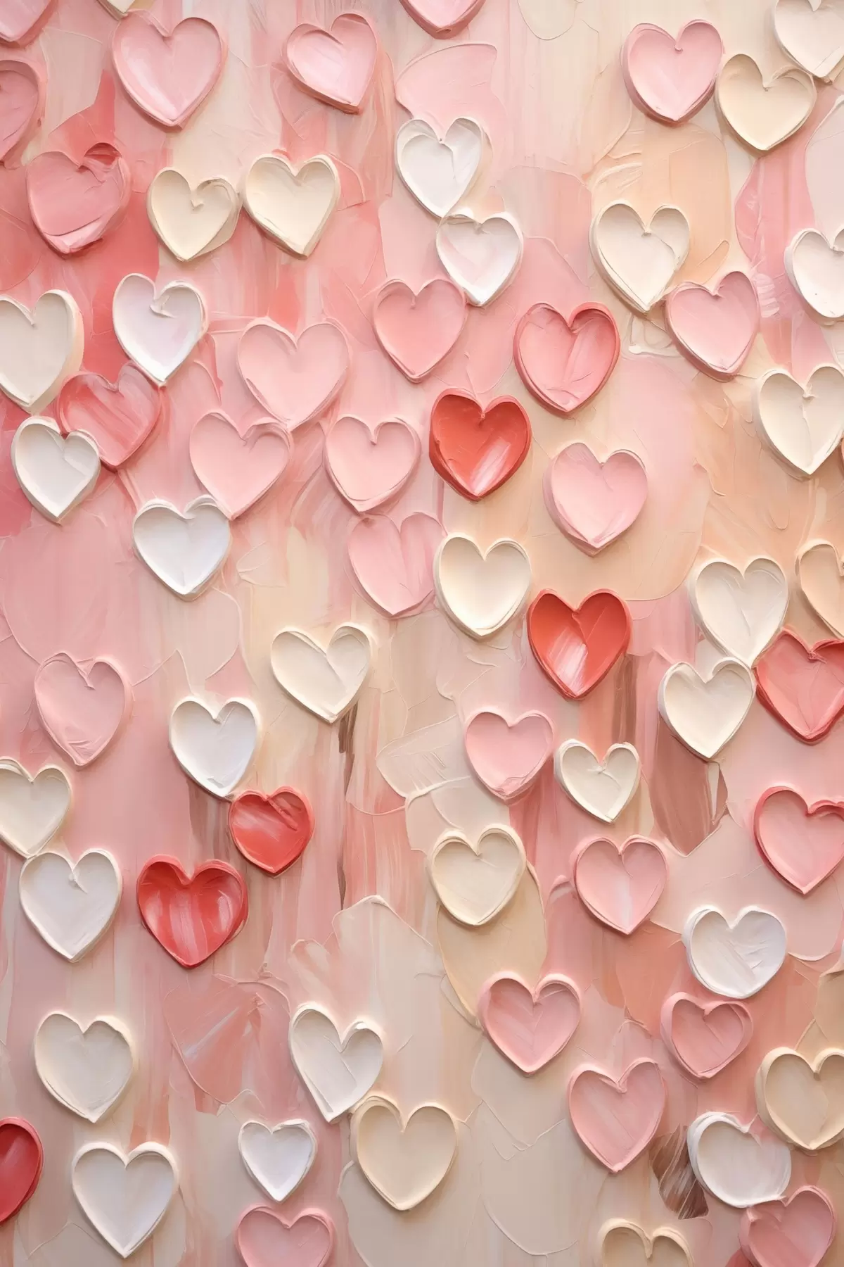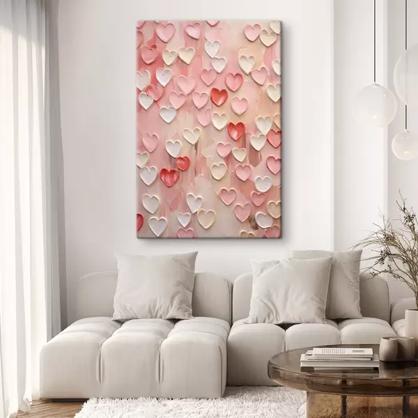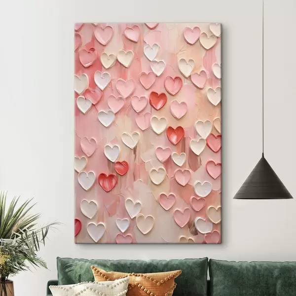 Obraz Srdíčka v různých odstínech broskvové a růžové barvy v texturovaném, malovaném stylu Č. s48752