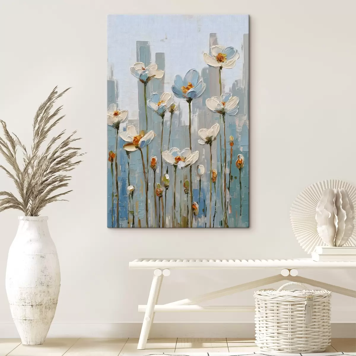Obraz květiny na pozadí města, ve stylu olejomalby Č. s48786