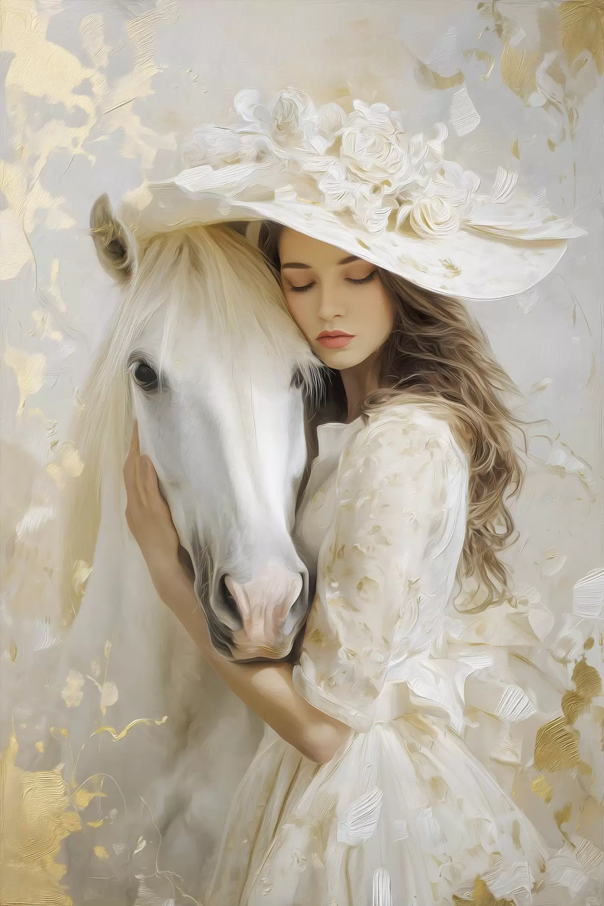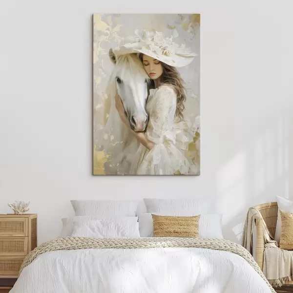 Obraz dívka s bílým koněm, namalovaná v olejovém stylu Č. s48790