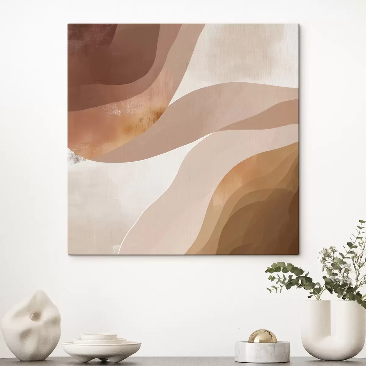 Obraz Abstraktní vlnící se tvary v kávově béžové barevné škále Č. s48836