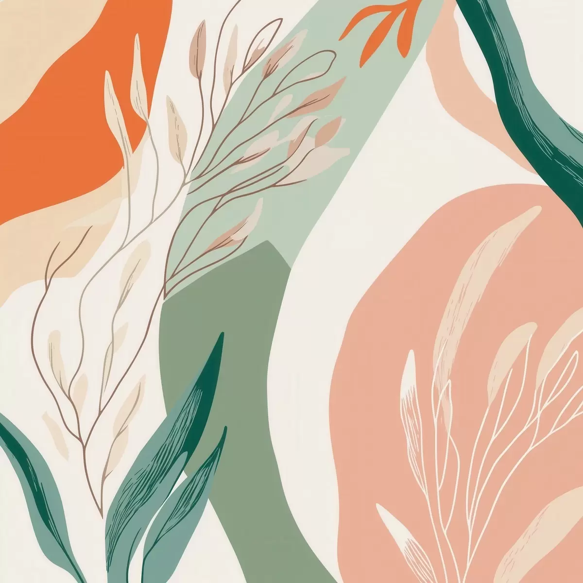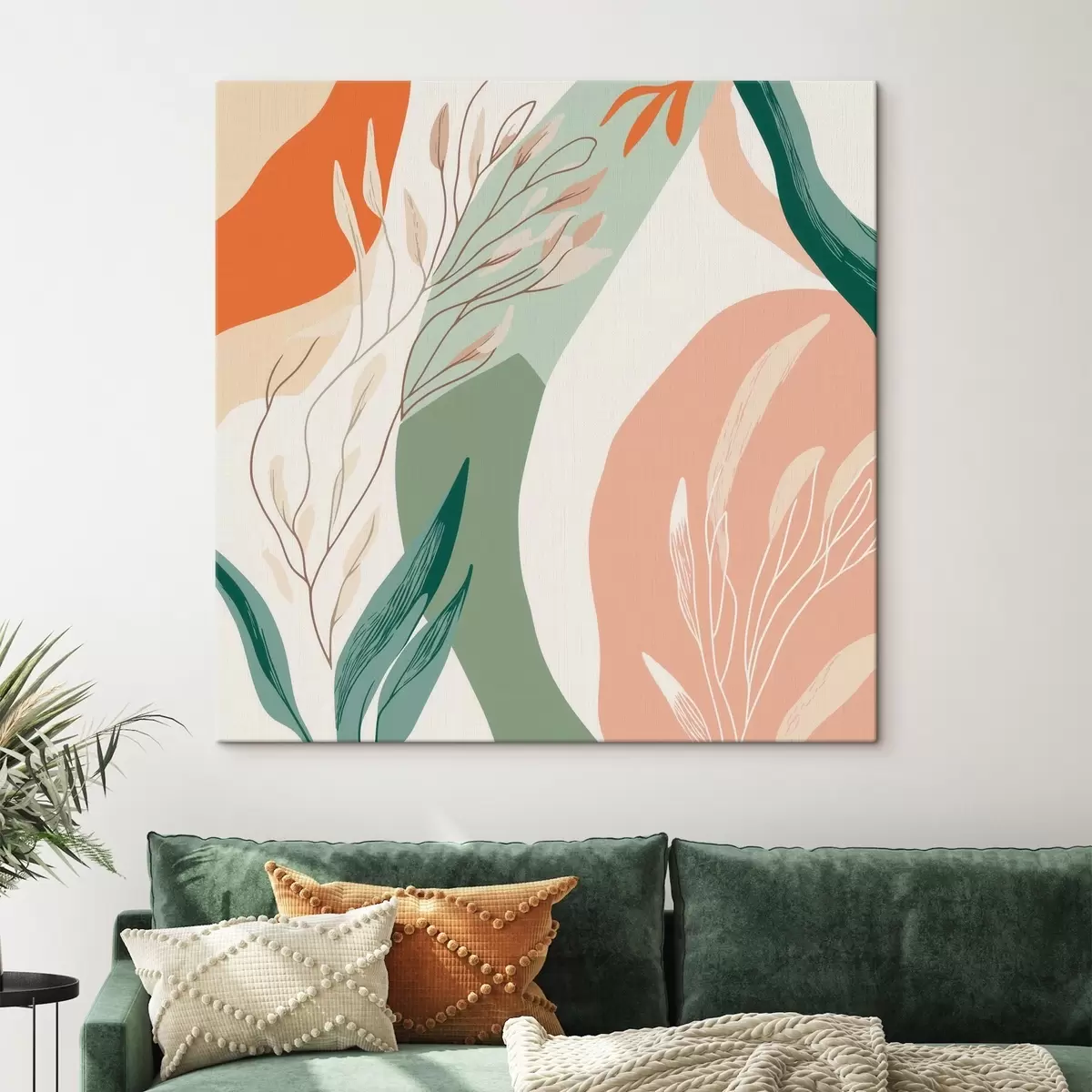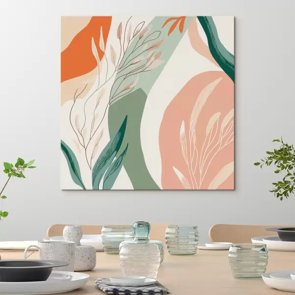 Obraz Botanické umění s jemnými tvary v korálově zelené barevné škále Č. s48840