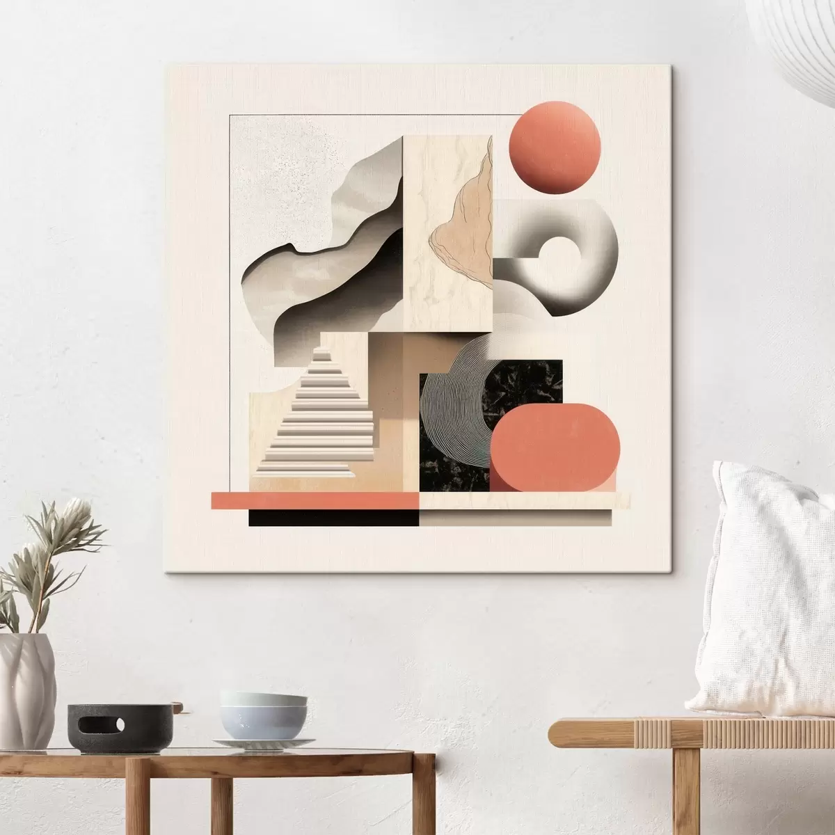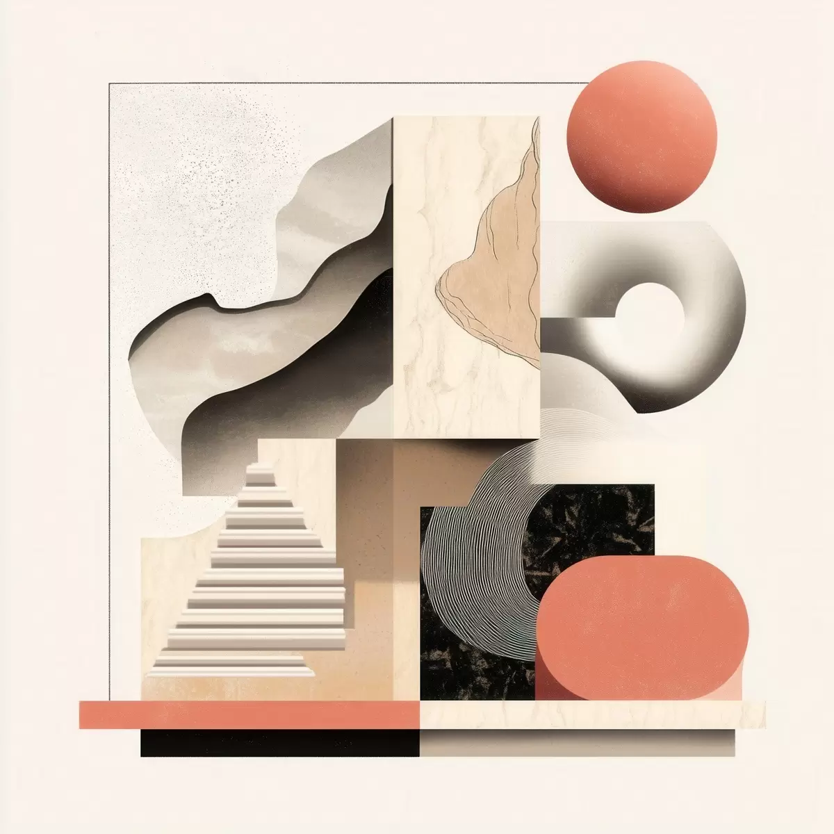 Obraz Abstraktní motivy v béžovo-šedé barevné škále v moderním malířském stylu Č. s48842