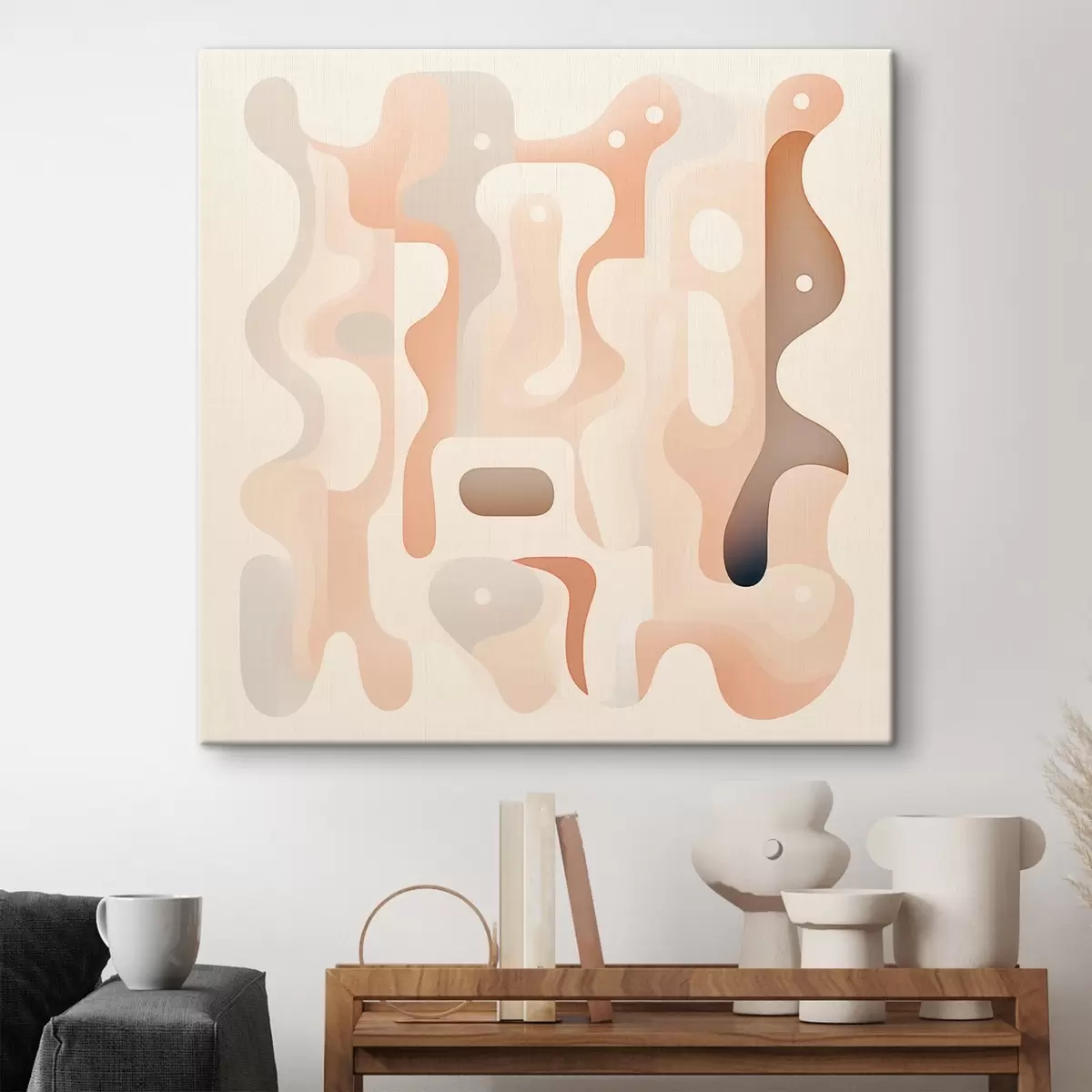 Obraz Harmonie zaoblených tvarů a přírodní barevné palety ve stylu ilustrací současného umění Č. s48845