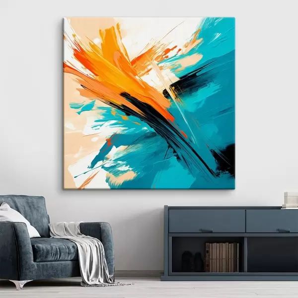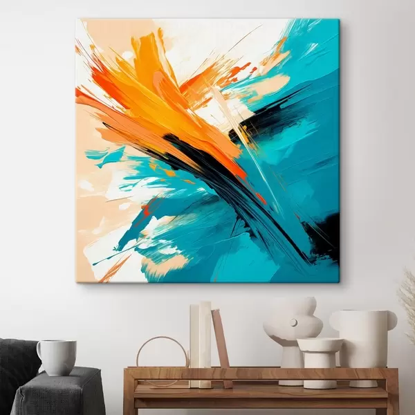 Obraz Živý obraz v tyrkysovo-terakotové barevné škále v moderním malířském stylu Č. s48855