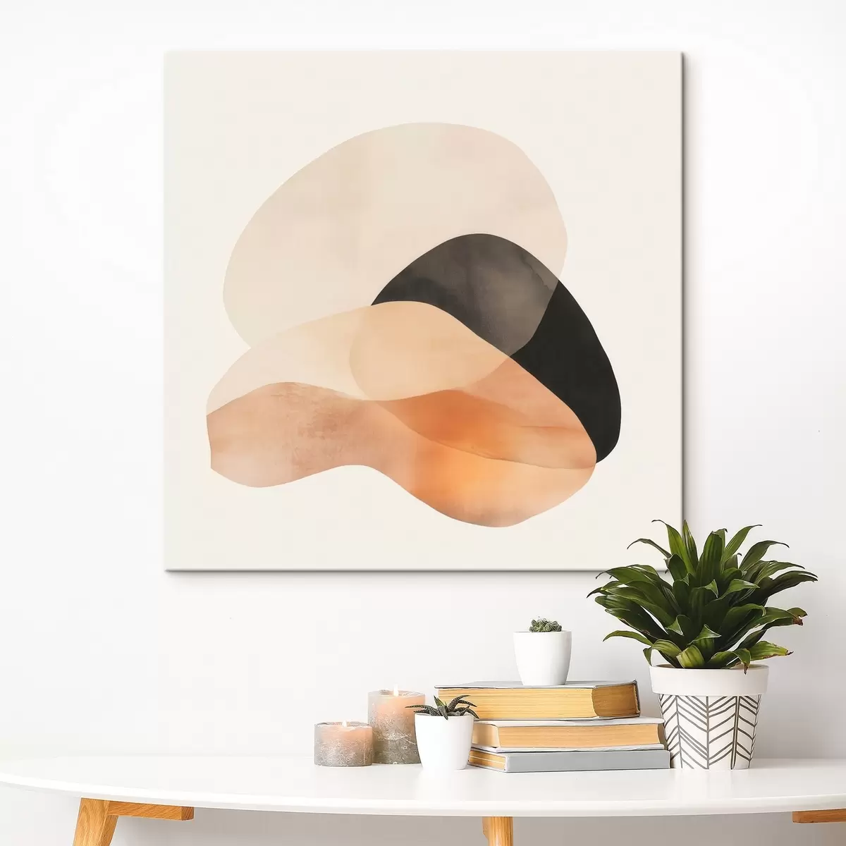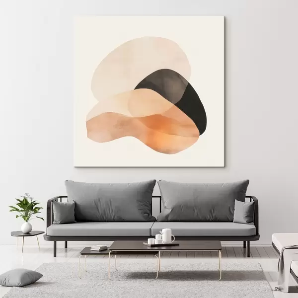 Obraz Abstraktní motivy v béžovo-broskvové barevné škále s tmavými akcenty v minimalistickém stylu Č. s48863
