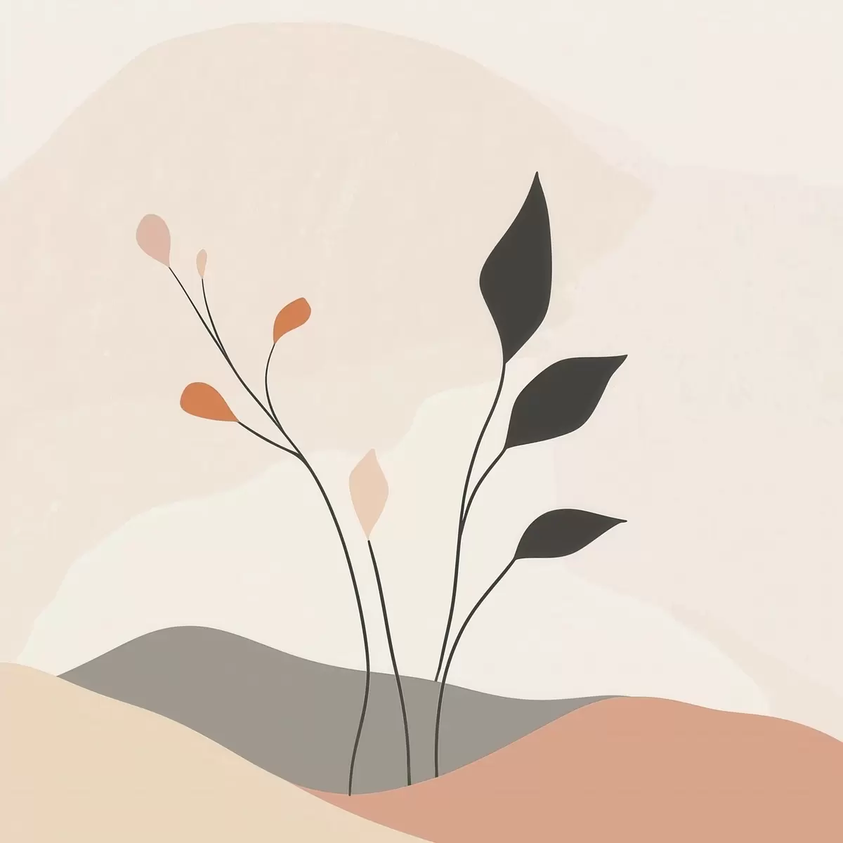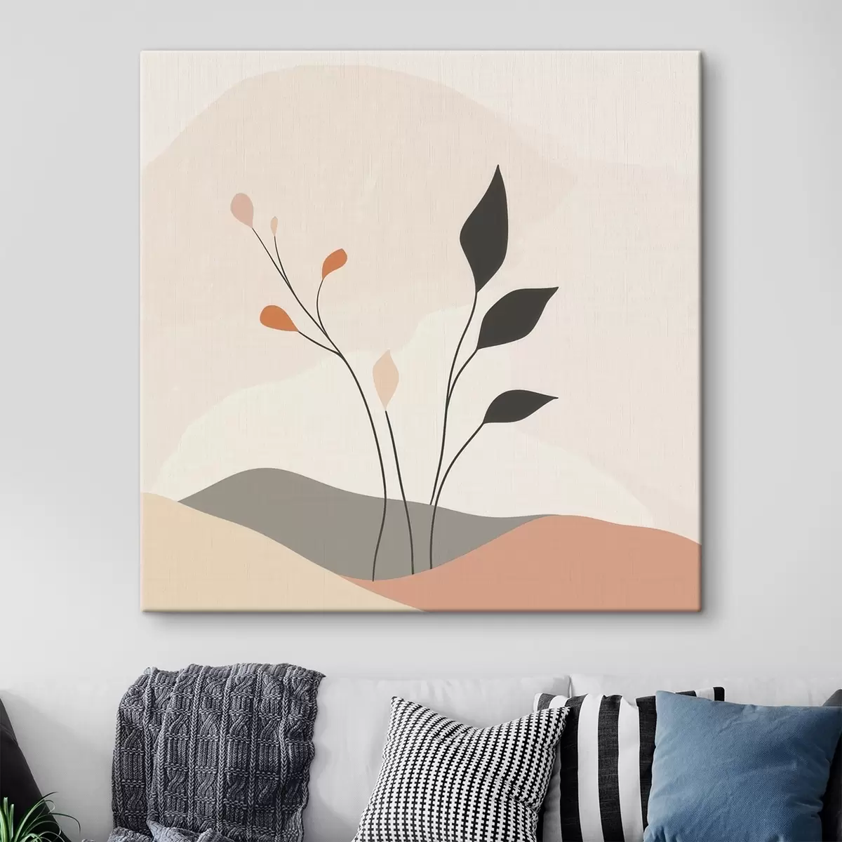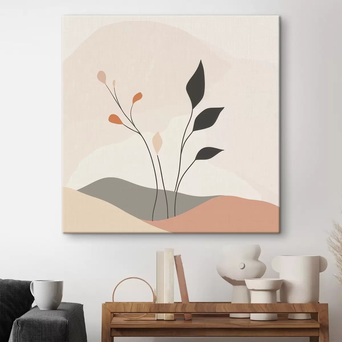 Obraz Stručná scéna s rostlinnou tematikou a organickými tvary v moderním uměleckém stylu Č. s48874