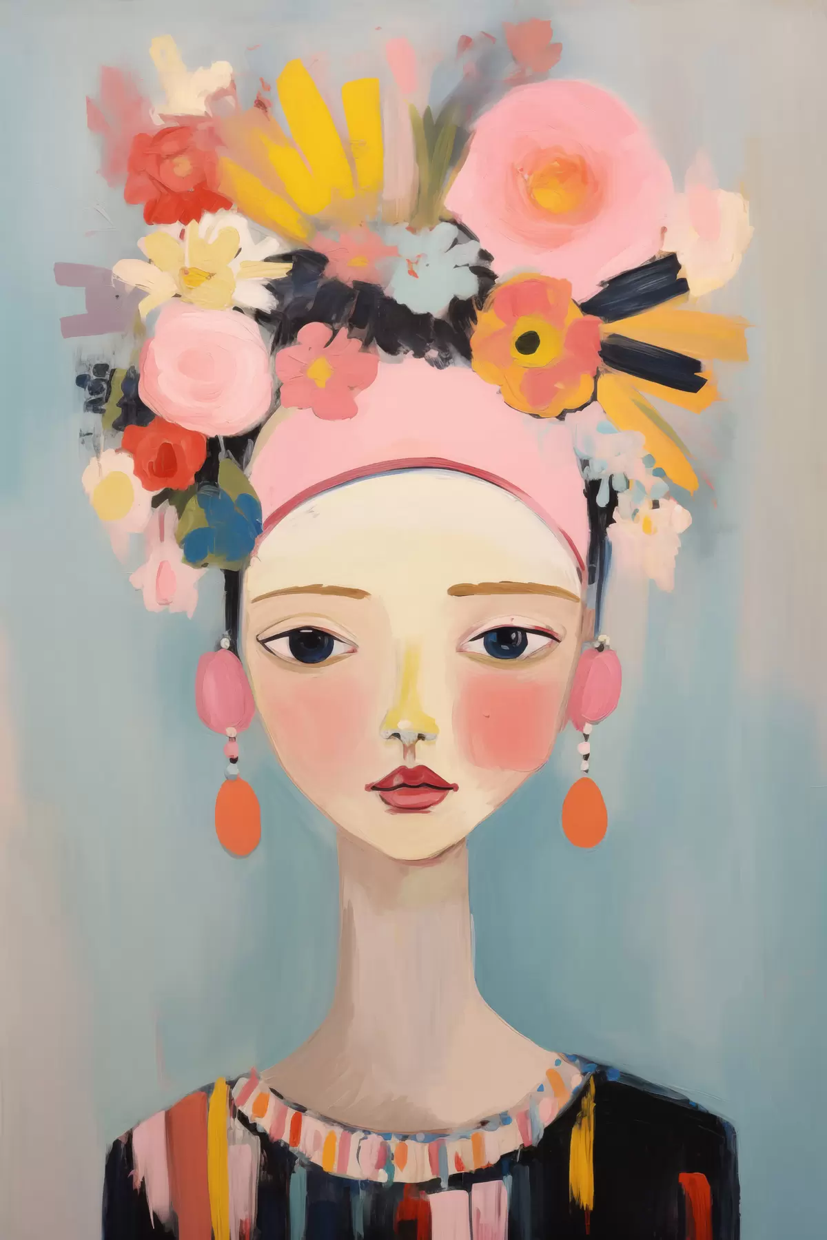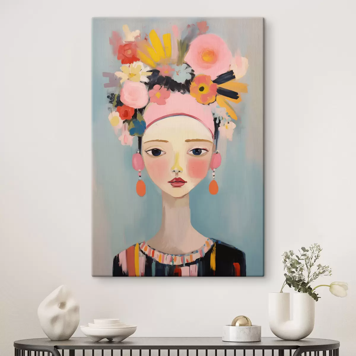 Obraz Portrét ženy s květinami ve vlasech, abstraktní styl Č. s48936