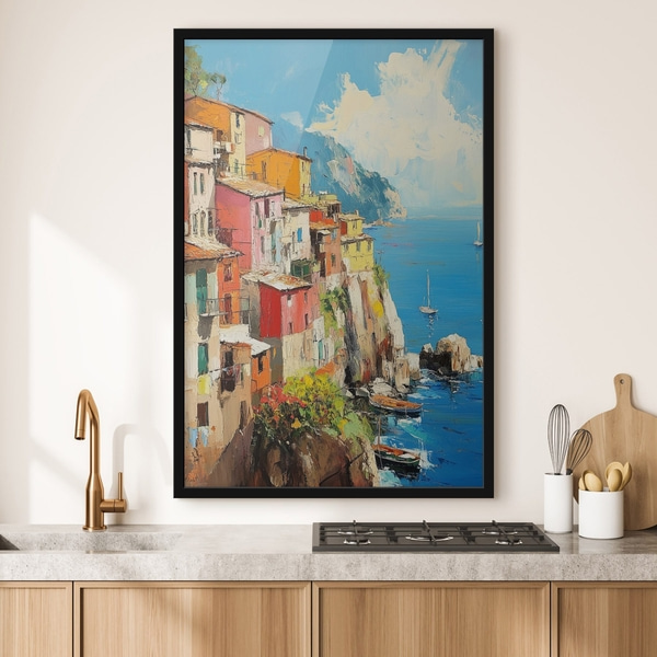 Barevný papoušek se zářivě modrým, oranžovým a žlutým peřím v letu na potřísněném pozadí