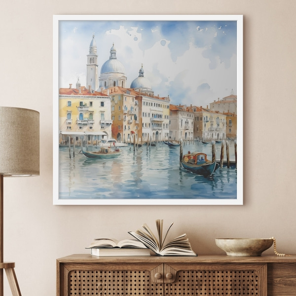 Barevný a dramatický západ slunce nad Canal Grande v Benátkách, Itálie akvarel umění