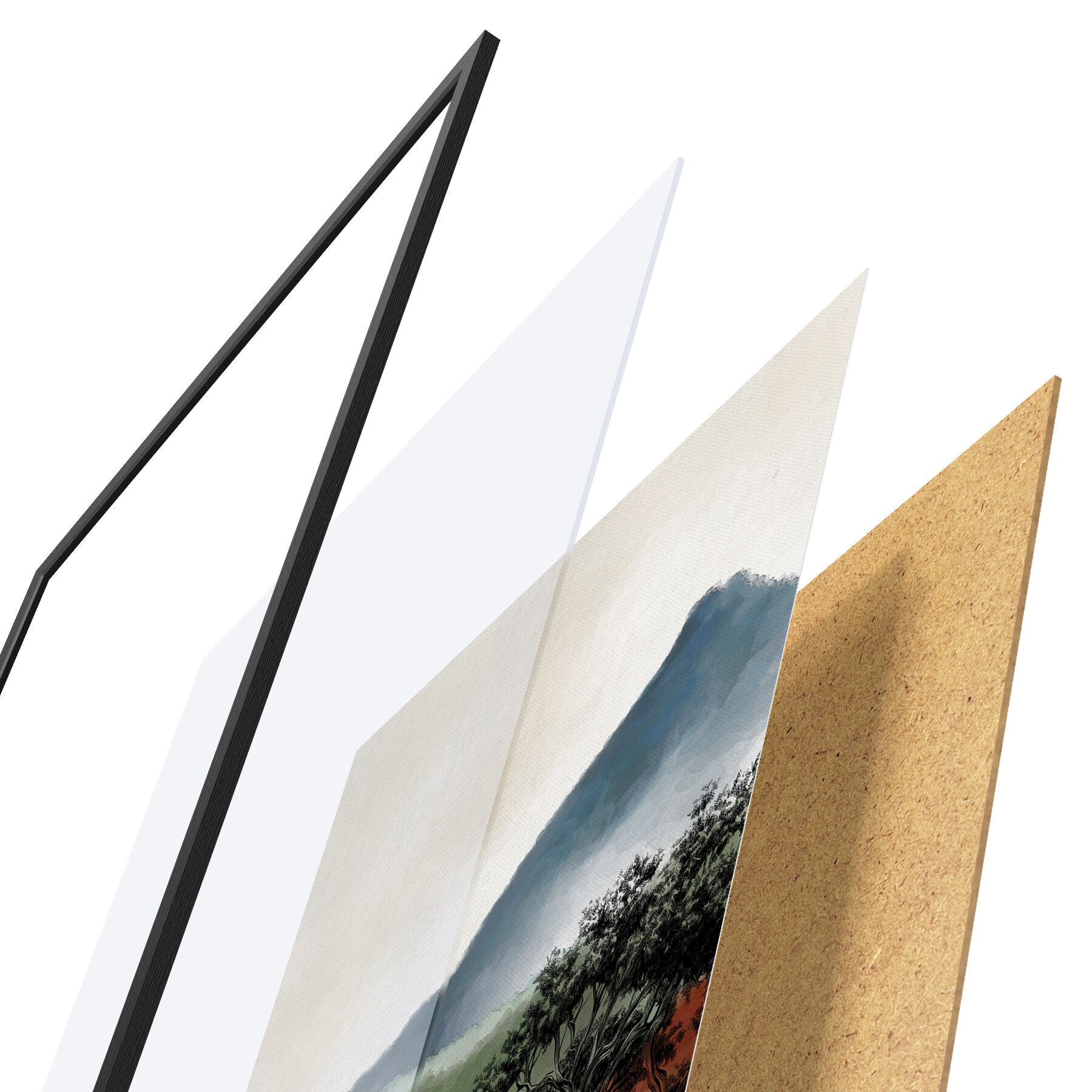 Plakát se skládá z rámu, plexiskla, tištěného obrazu a dřevotřískového podkladu. Díky úchytům na zadní straně lze plakát ihned zavěsit na zeď.