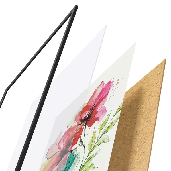 Plakát se skládá z rámu, plexiskla, tištěného obrazu a dřevotřískového podkladu. Díky úchytům na zadní straně lze plakát ihned zavěsit na zeď.