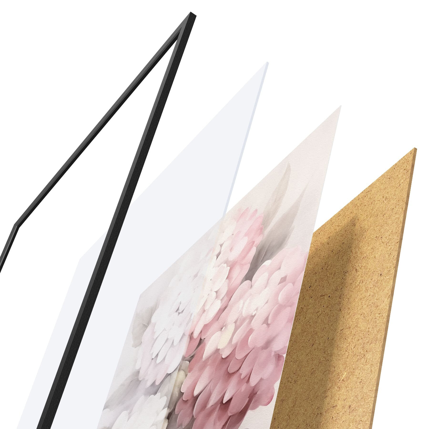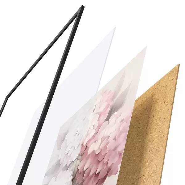Plakát se skládá z rámu, plexiskla, tištěného obrazu a dřevotřískového podkladu. Díky úchytům na zadní straně lze plakát ihned zavěsit na zeď.