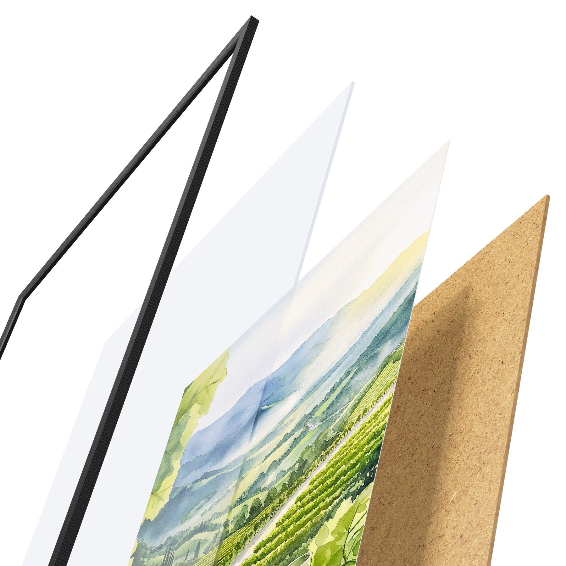 Plakát se skládá z rámu, plexiskla, tištěného obrazu a dřevotřískového podkladu. Díky úchytům na zadní straně lze plakát ihned zavěsit na zeď.