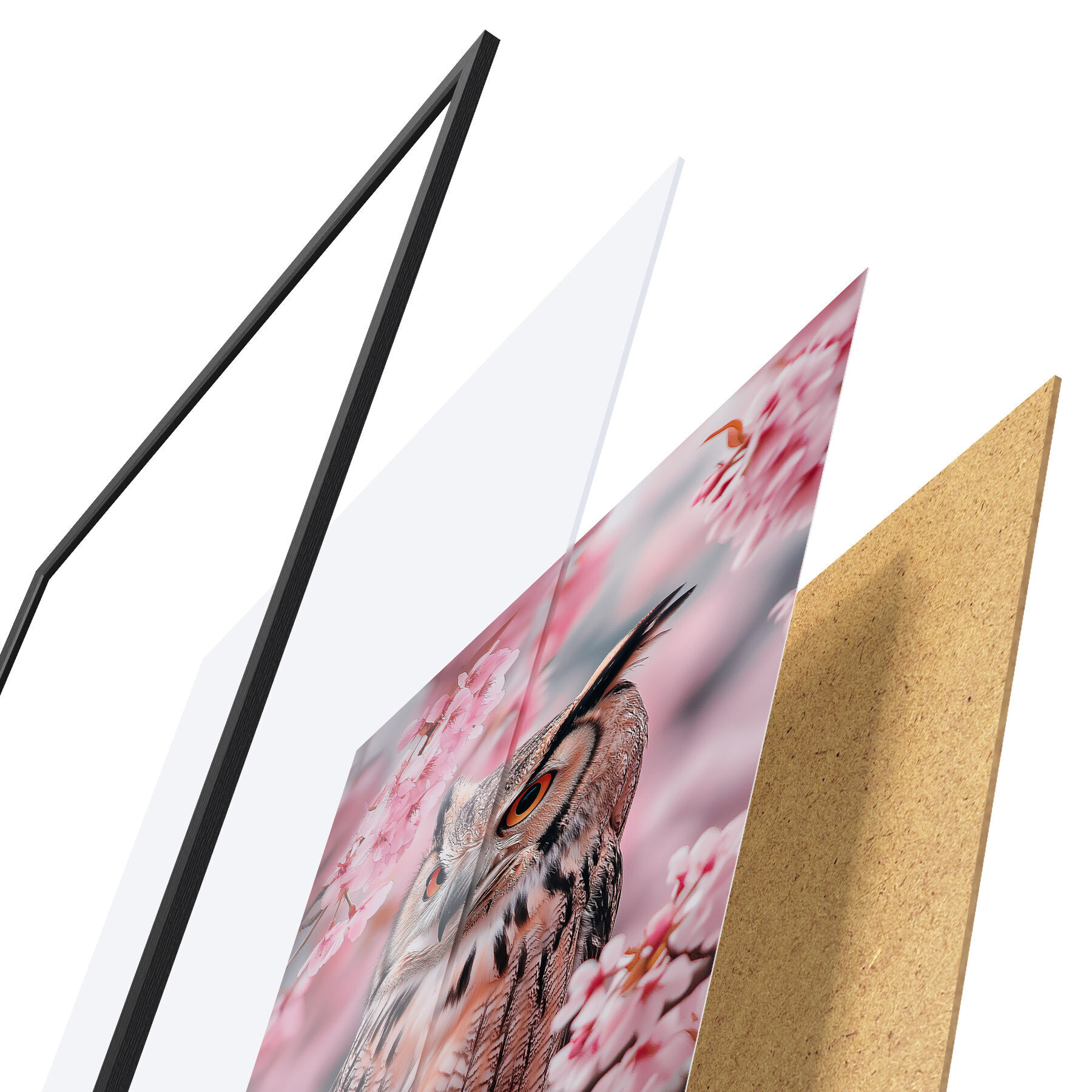 Plakát se skládá z rámu, plexiskla, tištěného obrazu a dřevotřískového podkladu. Díky úchytům na zadní straně lze plakát ihned zavěsit na zeď.
