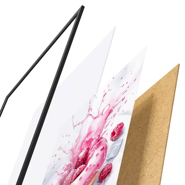 Plakát se skládá z rámu, plexiskla, tištěného obrazu a dřevotřískového podkladu. Díky úchytům na zadní straně lze plakát ihned zavěsit na zeď.