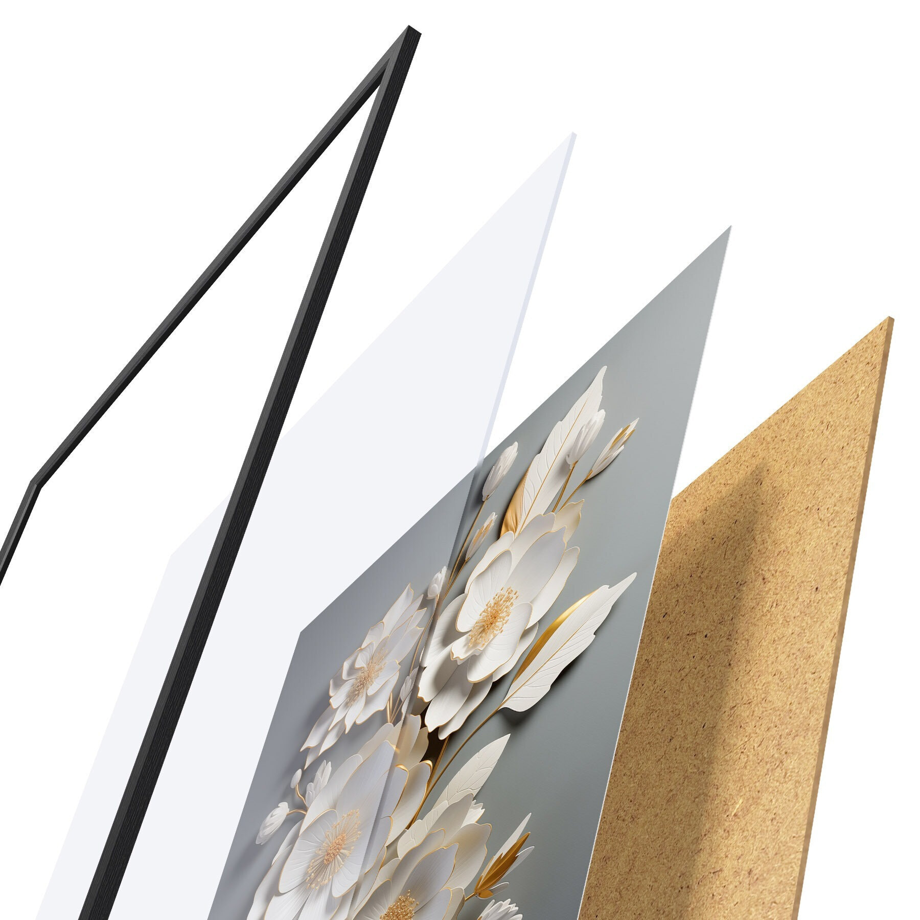 Plakát se skládá z rámu, plexiskla, tištěného obrazu a dřevotřískového podkladu. Díky úchytům na zadní straně lze plakát ihned zavěsit na zeď.