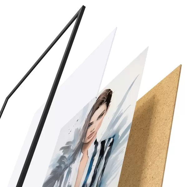 Plakát se skládá z rámu, plexiskla, tištěného obrazu a dřevotřískového podkladu. Díky úchytům na zadní straně lze plakát ihned zavěsit na zeď.