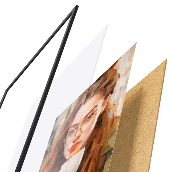 Plakát se skládá z rámu, plexiskla, tištěného obrazu a dřevotřískového podkladu. Díky úchytům na zadní straně lze plakát ihned zavěsit na zeď.