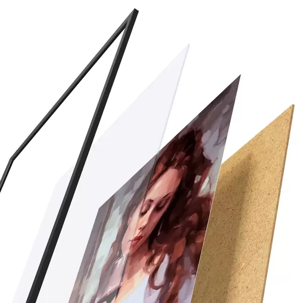 Plakát se skládá z rámu, plexiskla, tištěného obrazu a dřevotřískového podkladu. Díky úchytům na zadní straně lze plakát ihned zavěsit na zeď.