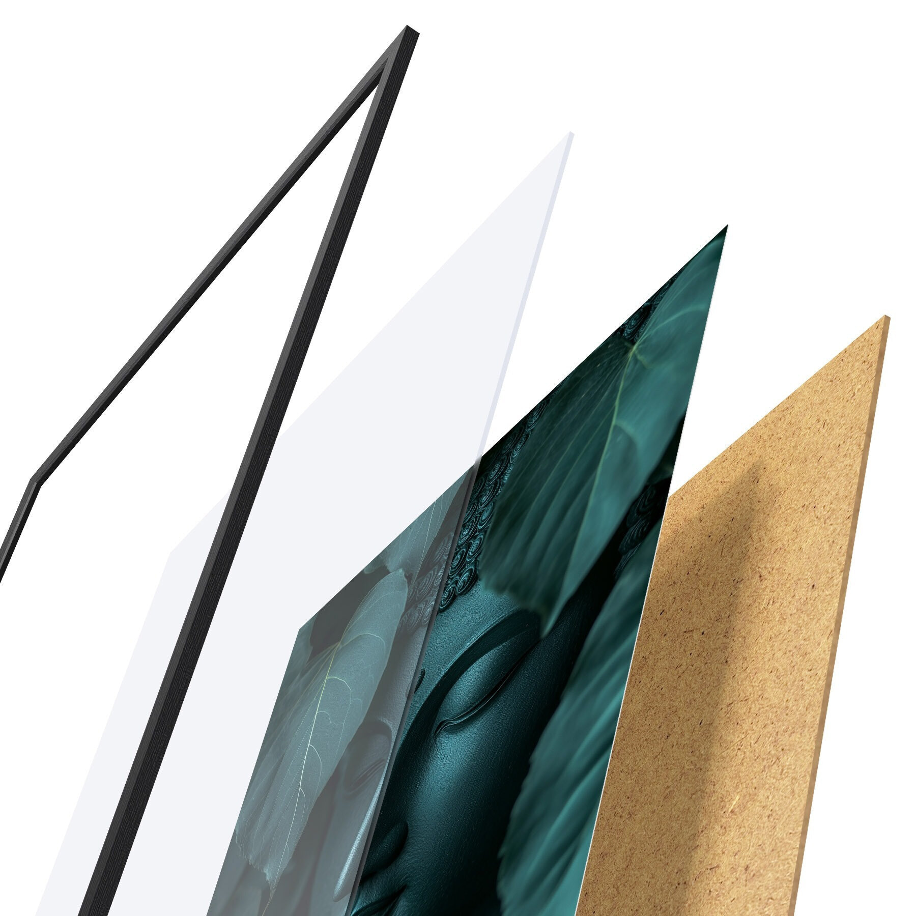 Plakát se skládá z rámu, plexiskla, tištěného obrazu a dřevotřískového podkladu. Díky úchytům na zadní straně lze plakát ihned zavěsit na zeď.