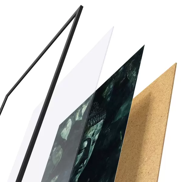 Plakát se skládá z rámu, plexiskla, tištěného obrazu a dřevotřískového podkladu. Díky úchytům na zadní straně lze plakát ihned zavěsit na zeď.