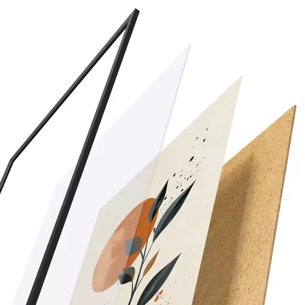 Plakát se skládá z rámu, plexiskla, tištěného obrazu a dřevotřískového podkladu. Díky úchytům na zadní straně lze plakát ihned zavěsit na zeď.