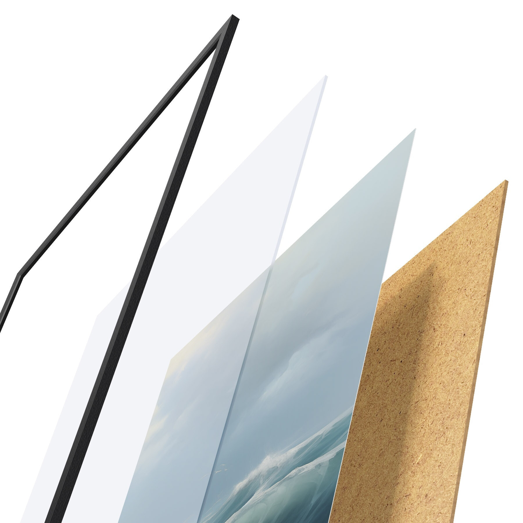 Plakát se skládá z rámu, plexiskla, tištěného obrazu a dřevotřískového podkladu. Díky úchytům na zadní straně lze plakát ihned zavěsit na zeď.