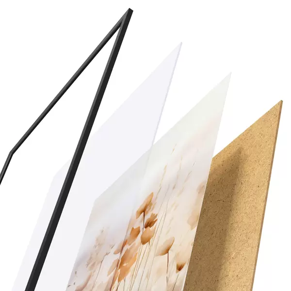 Plakát se skládá z rámu, plexiskla, tištěného obrazu a dřevotřískového podkladu. Díky úchytům na zadní straně lze plakát ihned zavěsit na zeď.