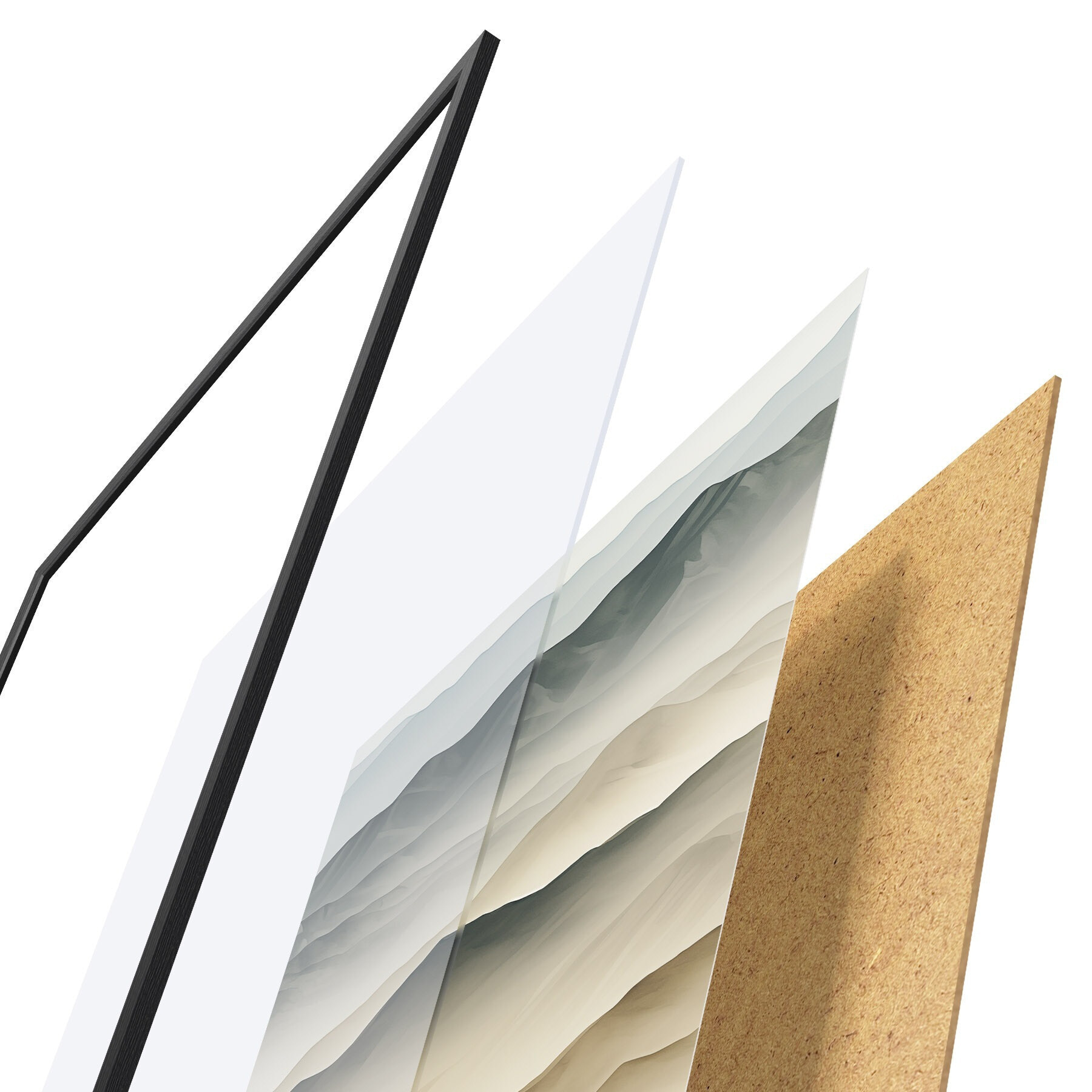 Plakát se skládá z rámu, plexiskla, tištěného obrazu a dřevotřískového podkladu. Díky úchytům na zadní straně lze plakát ihned zavěsit na zeď.