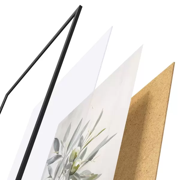 Plakát se skládá z rámu, plexiskla, tištěného obrazu a dřevotřískového podkladu. Díky úchytům na zadní straně lze plakát ihned zavěsit na zeď.