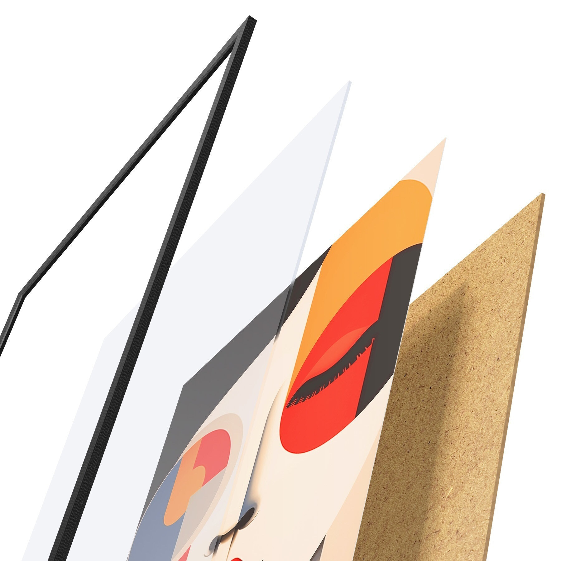 Plakát se skládá z rámu, plexiskla, tištěného obrazu a dřevotřískového podkladu. Díky úchytům na zadní straně lze plakát ihned zavěsit na zeď.