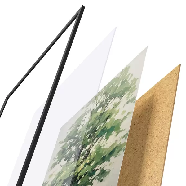 Plakát se skládá z rámu, plexiskla, tištěného obrazu a dřevotřískového podkladu. Díky úchytům na zadní straně lze plakát ihned zavěsit na zeď.