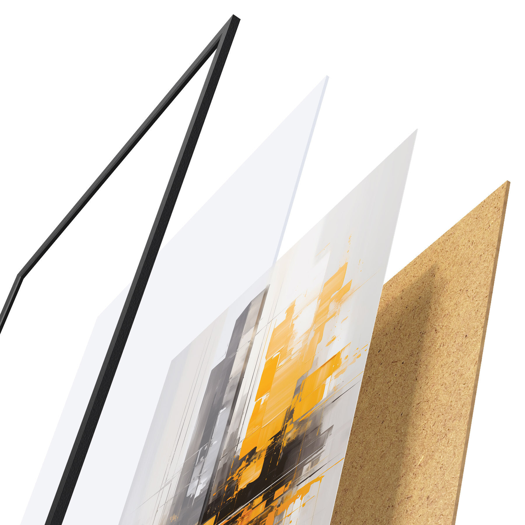 Plakát se skládá z rámu, plexiskla, tištěného obrazu a dřevotřískového podkladu. Díky úchytům na zadní straně lze plakát ihned zavěsit na zeď.