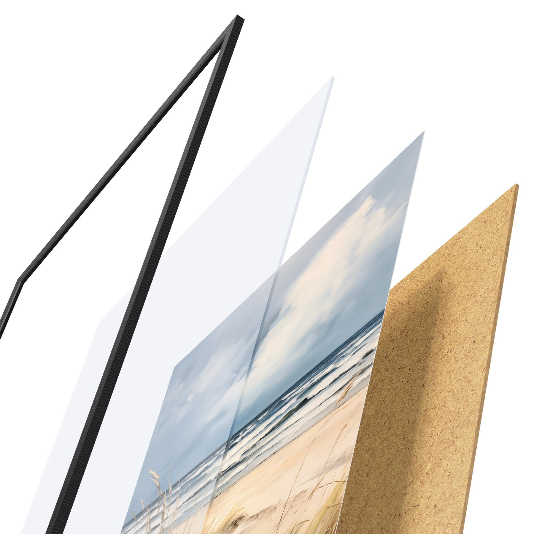Plakát se skládá z rámu, plexiskla, tištěného obrazu a dřevotřískového podkladu. Díky úchytům na zadní straně lze plakát ihned zavěsit na zeď.