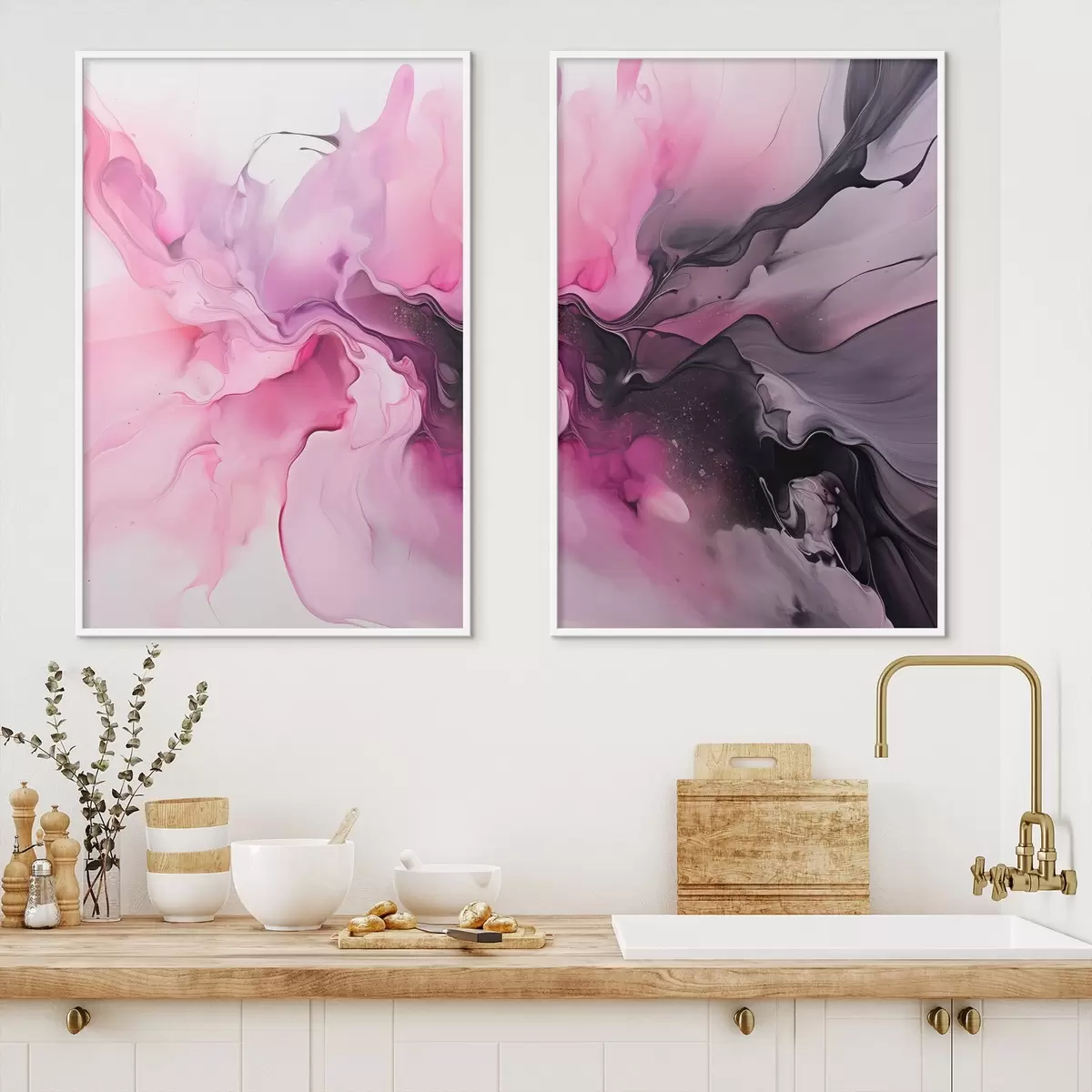 Poster Abstraktní víry růžové, fialové a černé barvy se prolínají v plynulé organické kompozici a vytvářejí pocit pohybu Č. d00532