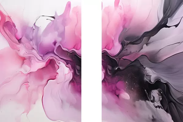 Poster Abstraktní víry růžové, fialové a černé barvy se prolínají v plynulé organické kompozici a vytvářejí pocit pohybu Č. d00532