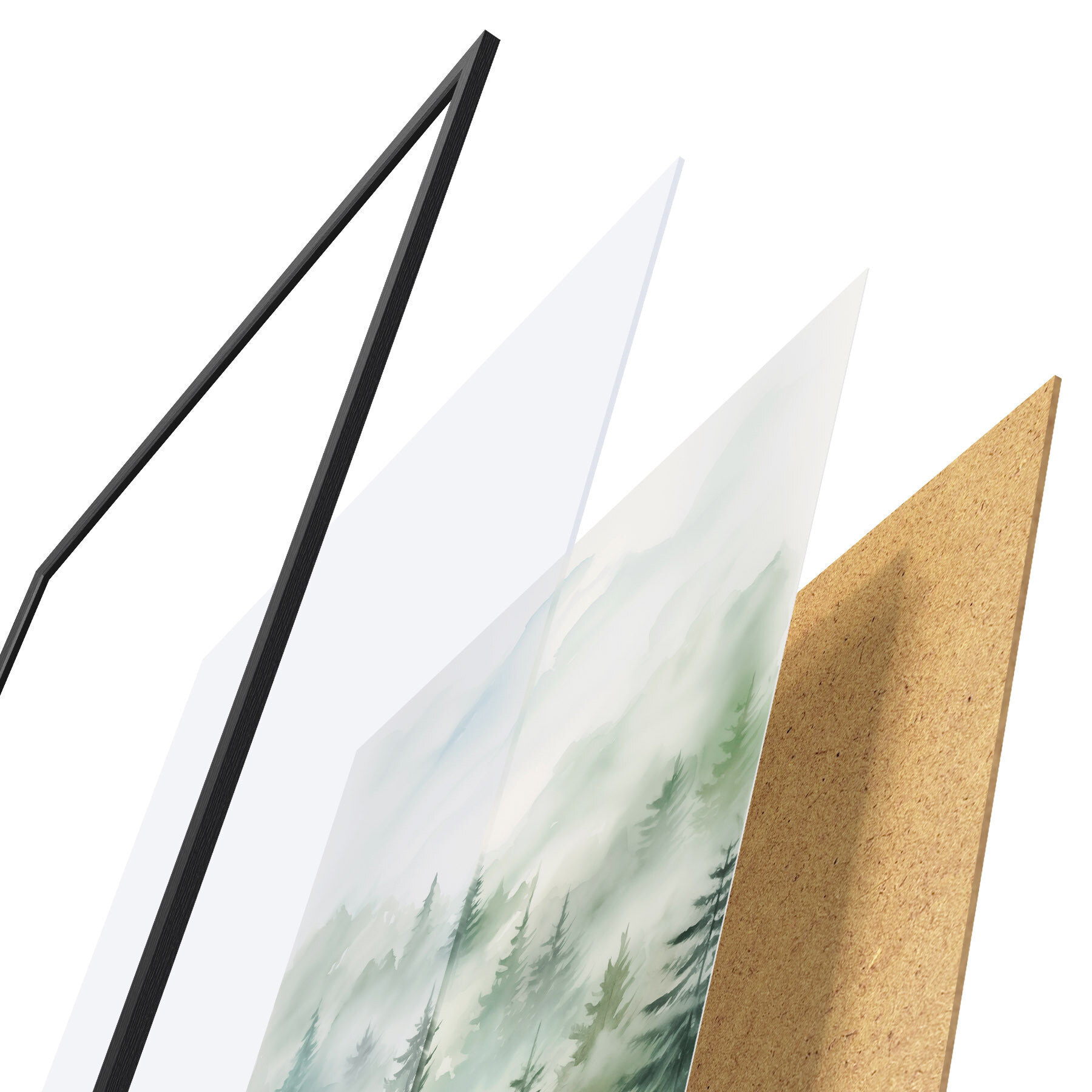 Plakát se skládá z rámu, plexiskla, tištěného obrazu a dřevotřískového podkladu. Díky úchytům na zadní straně lze plakát ihned zavěsit na zeď.