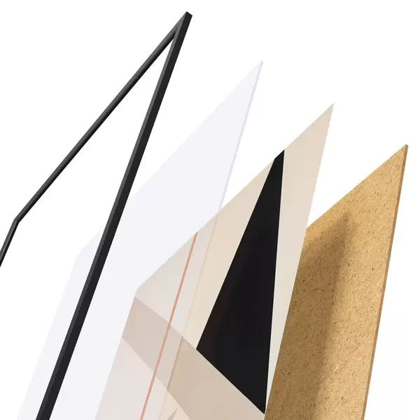 Plakát se skládá z rámu, plexiskla, tištěného obrazu a dřevotřískového podkladu. Díky úchytům na zadní straně lze plakát ihned zavěsit na zeď.
