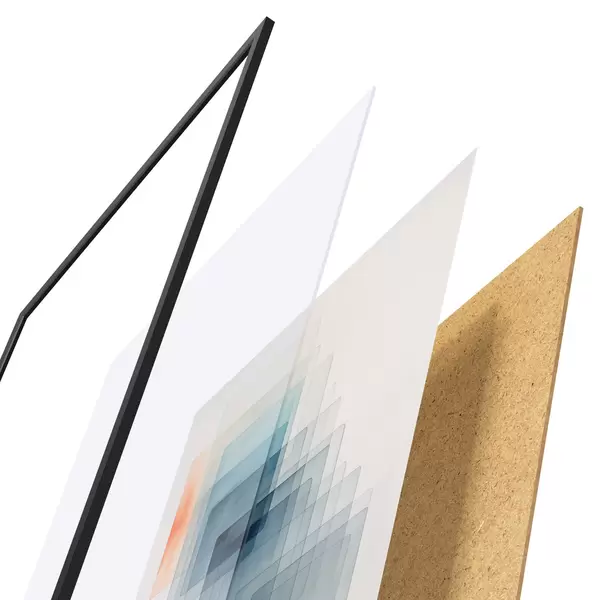 Plakát se skládá z rámu, plexiskla, tištěného obrazu a dřevotřískového podkladu. Díky úchytům na zadní straně lze plakát ihned zavěsit na zeď.