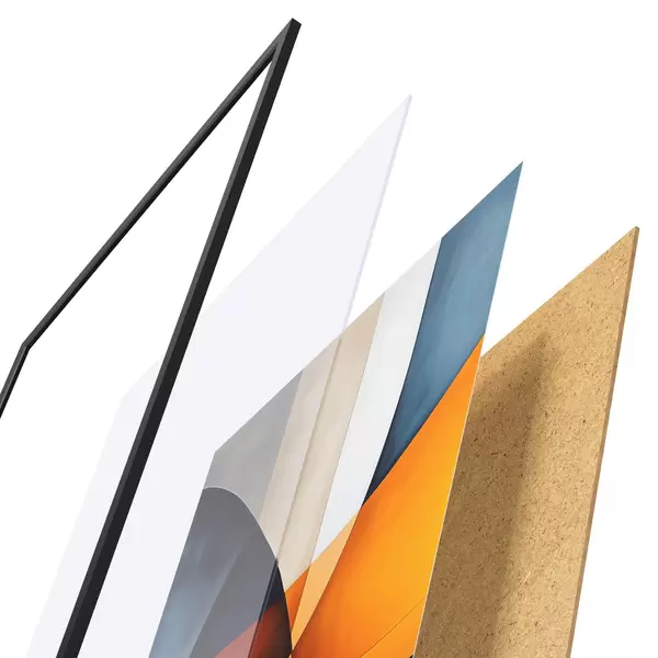 Plakát se skládá z rámu, plexiskla, tištěného obrazu a dřevotřískového podkladu. Díky úchytům na zadní straně lze plakát ihned zavěsit na zeď.