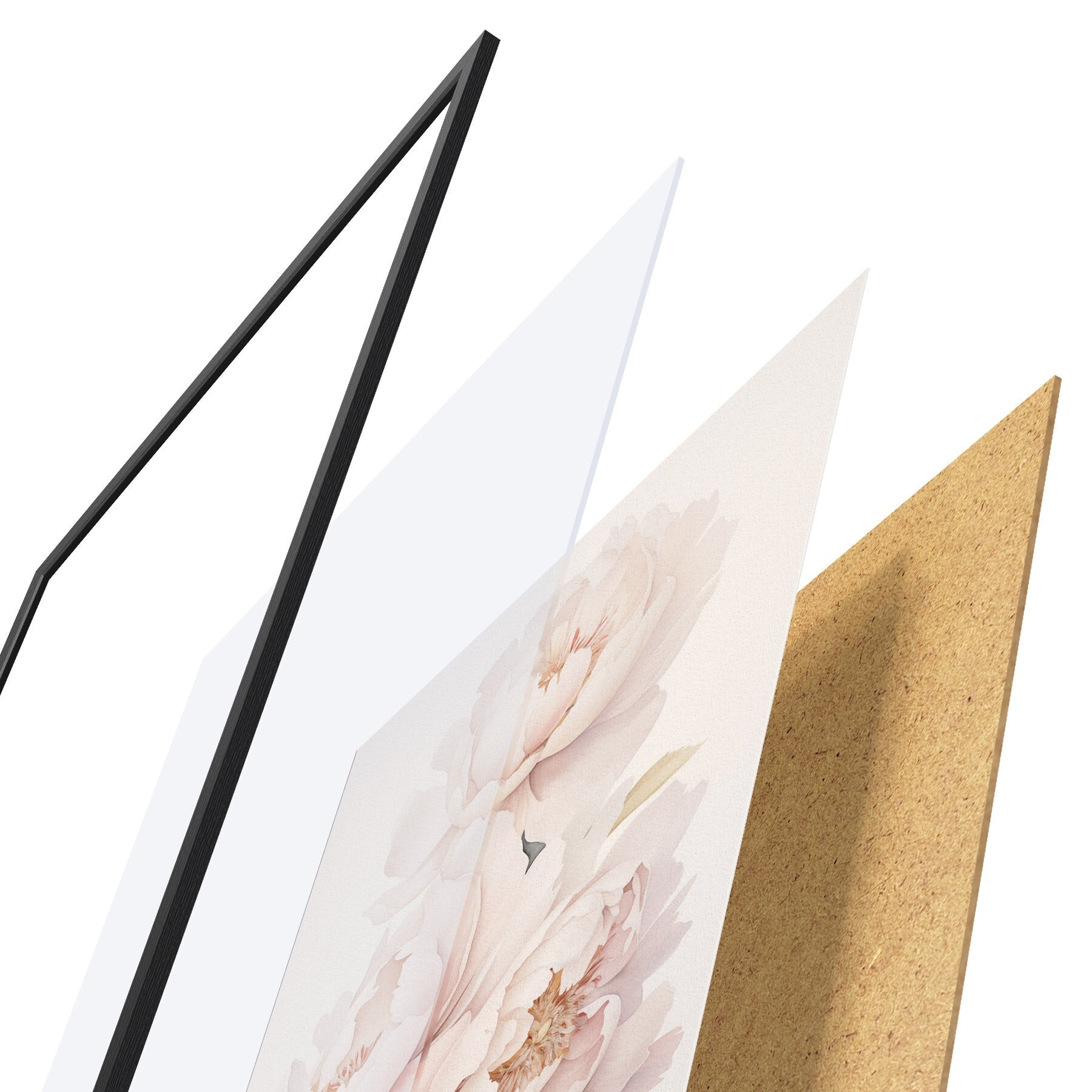 Plakát se skládá z rámu, plexiskla, tištěného obrazu a dřevotřískového podkladu. Díky úchytům na zadní straně lze plakát ihned zavěsit na zeď.