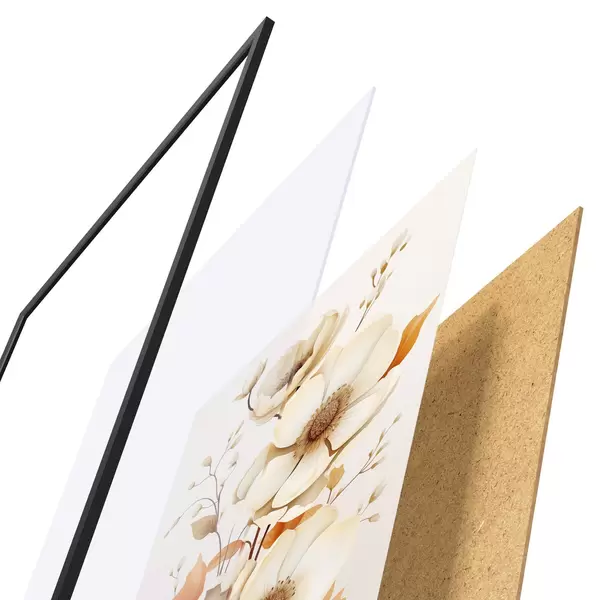 Plakát se skládá z rámu, plexiskla, tištěného obrazu a dřevotřískového podkladu. Díky úchytům na zadní straně lze plakát ihned zavěsit na zeď.