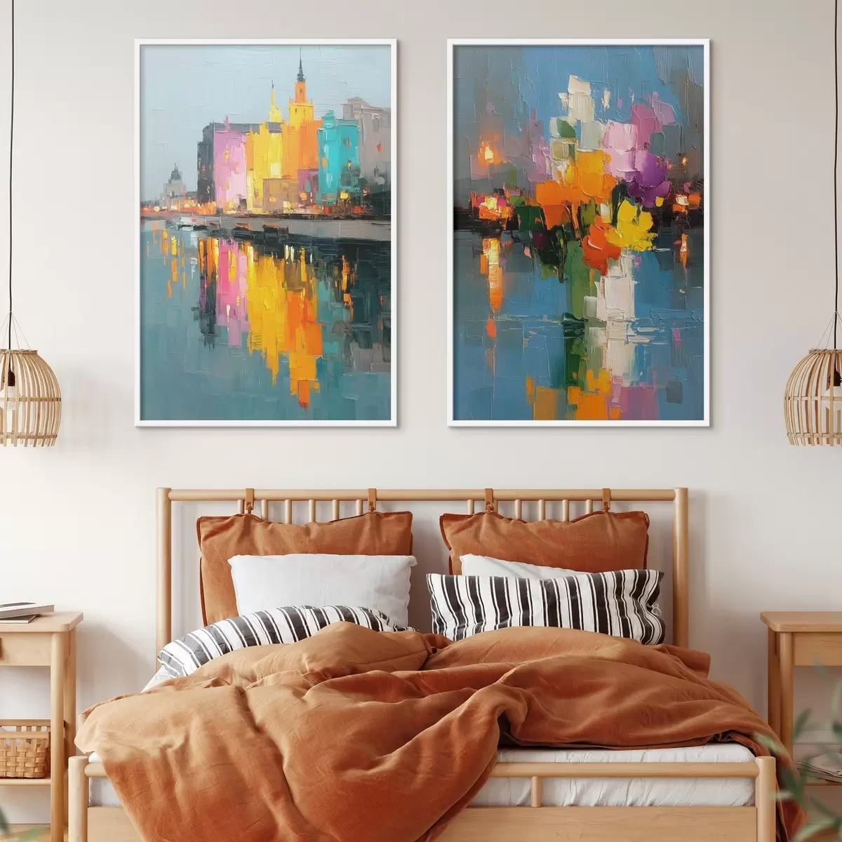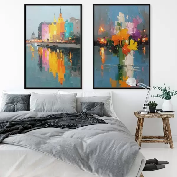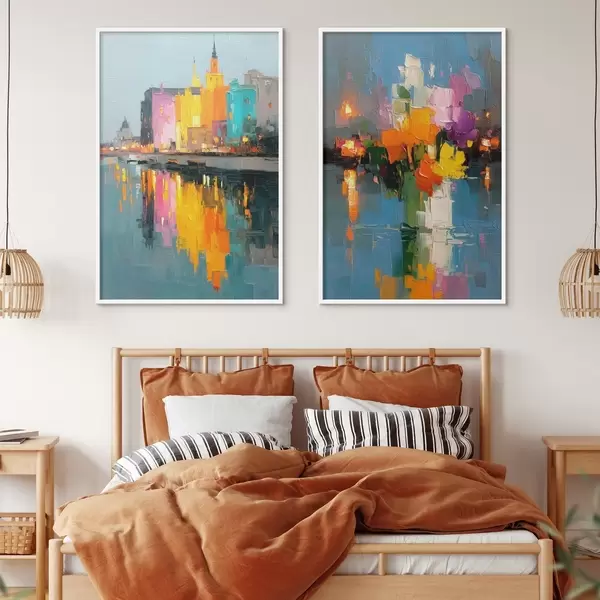 Poster Dynamika města: abstraktní kompozice s odrazy světel na řece Č. d00569