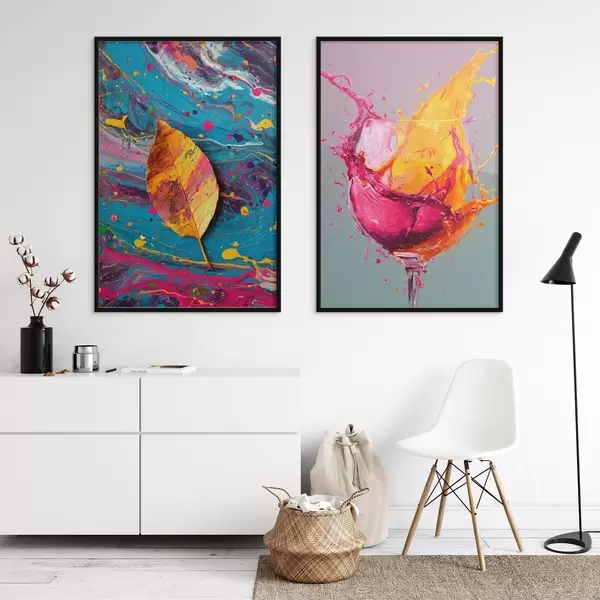 Poster Expresivní abstrakce s prvky přírody a nápojů Č. d00570