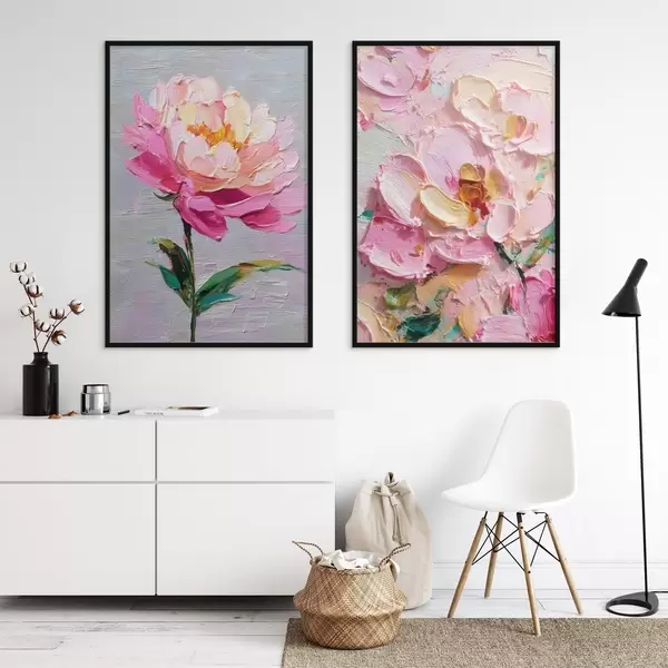 Poster Moderní umění s růžovými květy v objemové technice Č. d00572