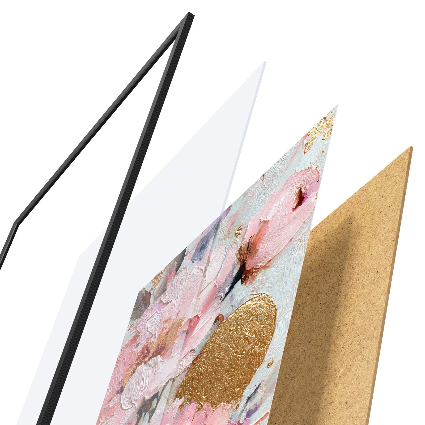 Plakát se skládá z rámu, plexiskla, tištěného obrazu a dřevotřískového podkladu. Díky úchytům na zadní straně lze plakát ihned zavěsit na zeď.