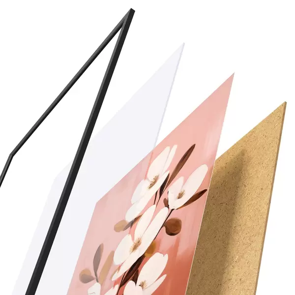 Plakát se skládá z rámu, plexiskla, tištěného obrazu a dřevotřískového podkladu. Díky úchytům na zadní straně lze plakát ihned zavěsit na zeď.
